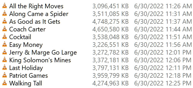 This is a list of the last 11 videos I have downloaded from Paramount Plus.....
