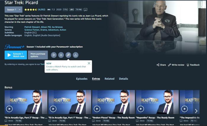 The Extra's for these series on Amazon Prime and Paramount+ (as an Amazon Prime Channel) are available for download via alternate software on Amazon Prime.