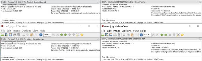 This morning I ran 5 tests with the latest two episodes of American Horror Story on Hulu using StreamFab vs "Competitor".