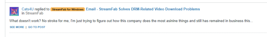 today with a first topic that unfortunately doesn't directly relate to Streamfab but to one of the mods: cats4u.