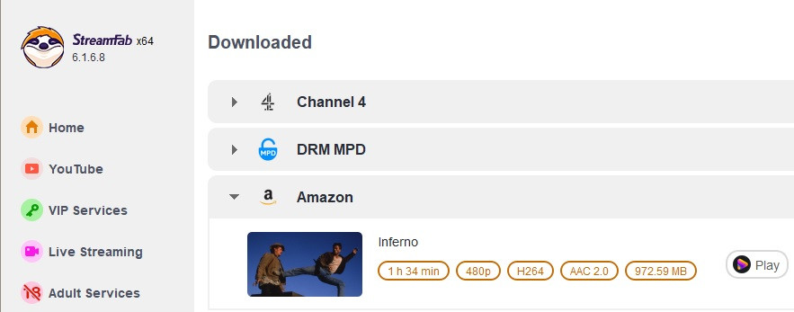 Inferno - Amazon. Downloading causes StreamFab to crash