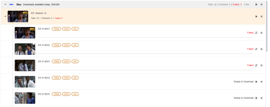 Trying to Download Using MAX but it Keeps Failing same on Amazon with Videos from Freevee. here is a Screen shot and the logs.
