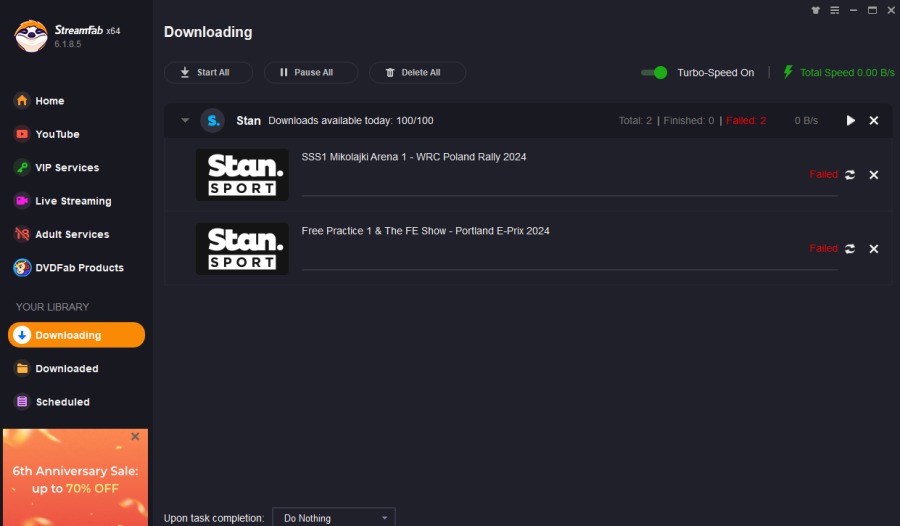 The banner says as of v6.1.8.4 for Stan Sport that the DRM is fully fixed. I'm trying to download these that are recent and they're failing. I've tried completely uninstalling StreamFab with a professional uninstaller and installing again without success in this issue. I can post a log file if needed.