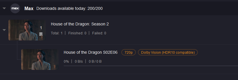Down to 240... then it starts cycling the audio... Atmos... EAC3... AAC... I let it sit for an hour and it didn't download anything.