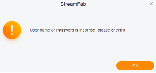 > Whenever StreamFab starts I get a pop-up box that tells me my username and password is wrong.