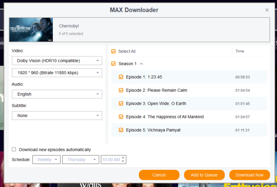 When downloading shows from MAX I'm getting different resolutions per episode. For example, I downloaded Chernobyl today. Episodes 2,4,5 downloaded in 4K. Episodes 1 and 3 downloaded in 720p. Why would I get wildly different quality on a per episode basis? I'm using the 6202 Beta but this was true using 6202, 6201, and I believe further back as well.
