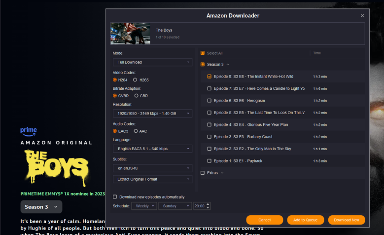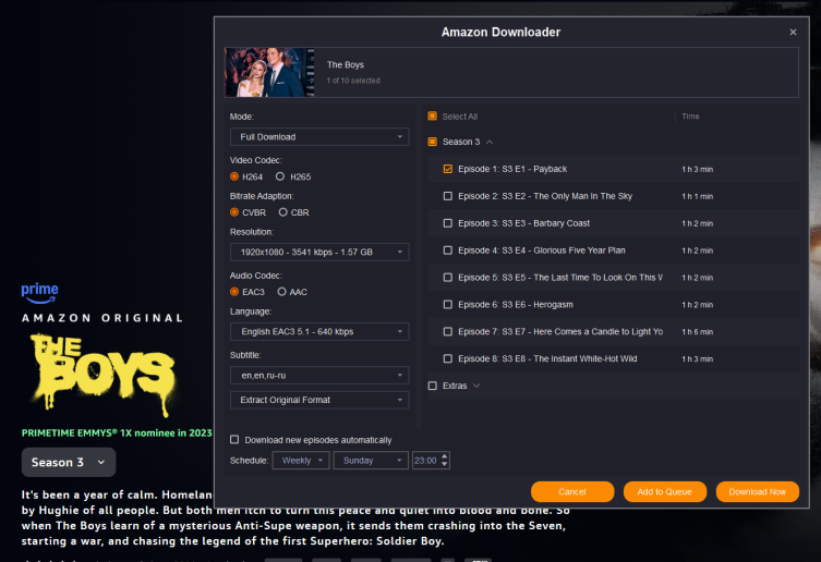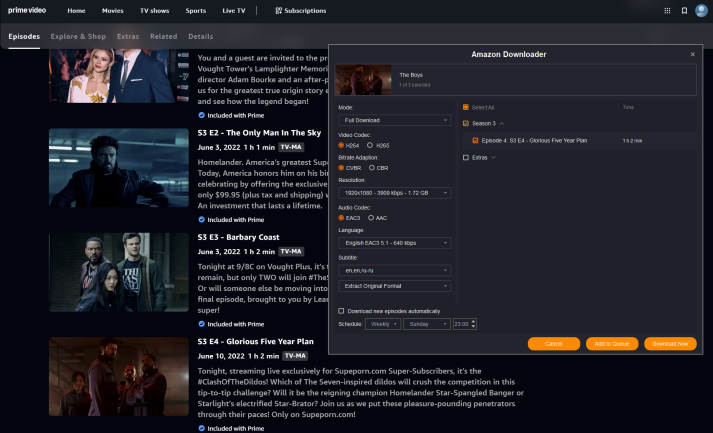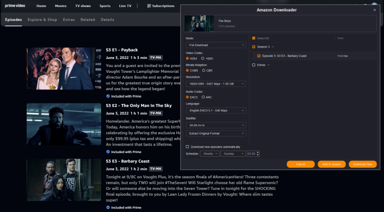 The advantage of this method over the "movie mode" is that this preserves all episode data, so you can queue up all episodes you like and then download them and all of them will be treated as series episodes by 'Fab.
