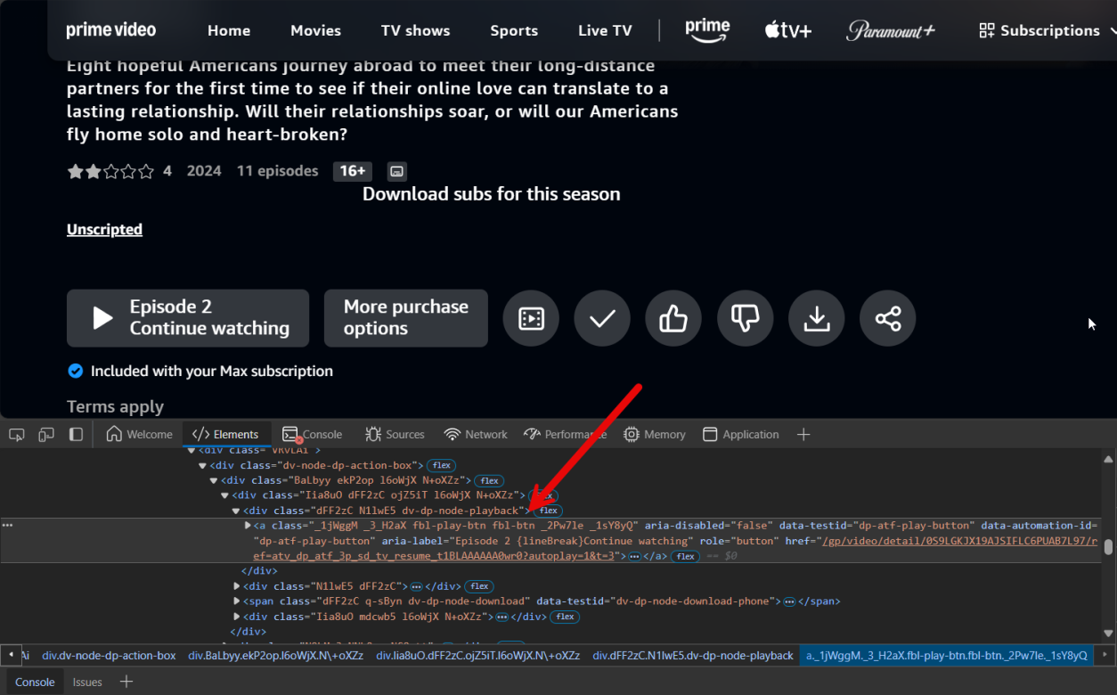 The simplest way to get 'Fab to analyse something other than the first episode in a season, is to reverse the list of episodes and get 'Fab to analyse the last episode of the season (obviously this breaks if Amazon insert junk like specials etc in the main listing of the episodes instead of the specials, but that's why this is a hack (see terminology) and not a fix). You will observe that the aforementioned function returns a list of episodes on line 174 as