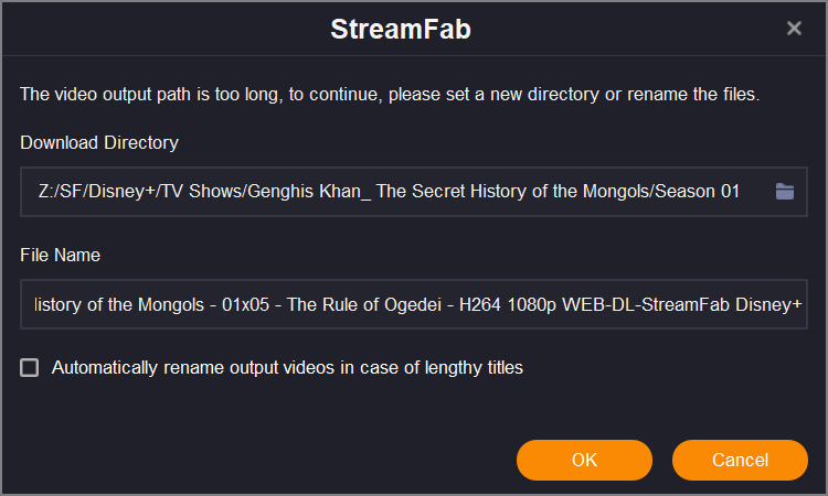 StreamFab brings up the annoying pop-up that tells you to edit the path or filename to make it shorter in order to start the remuxing process. This effectively pauses your queue so if you have 100 items in the queue, and you start it, when you come back several hours later, you realize it downloaded 3 things and is now awaiting your input. So enraging!