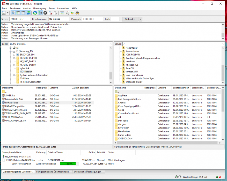 I have Dvdfab 11.0.8.4. and i use the parasite.iso from 4K Disc "Parasite" without HDR to make the mainFilm to BD50 Disc. The Film was compressed with 90%. The LofFile is as a Attechment.