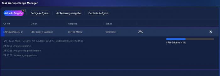 It doesn't work. The original 96.4 GB movie is not compressed to 95% = 91.6 GB as seen on the attachments. It is only copied and not compressed.