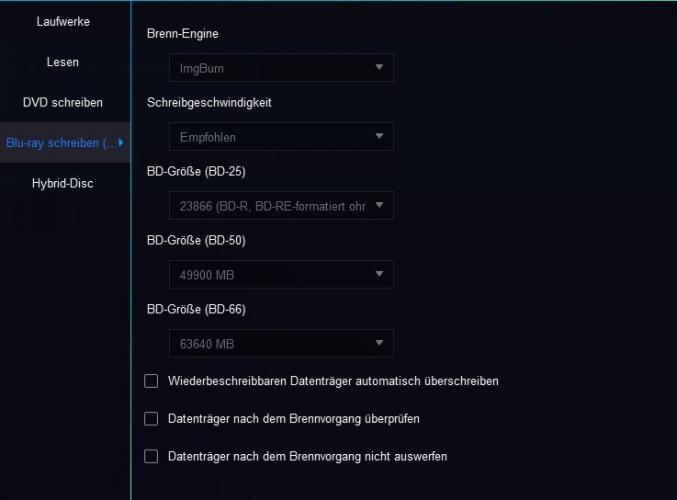 New: Added support to customize the writable media size for BD100 discs at Settings > Drives > Blu-ray Write.[/QUOTE]