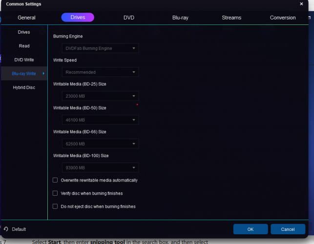 New: Added support to customize the writable media size for BD100 discs at Settings > Drives > Blu-ray Write.